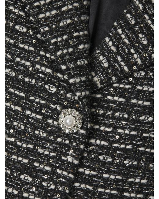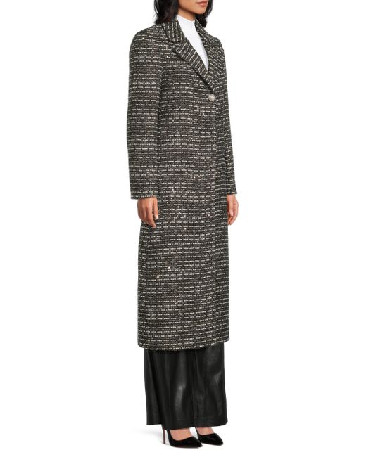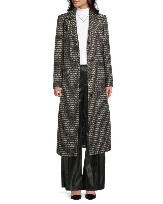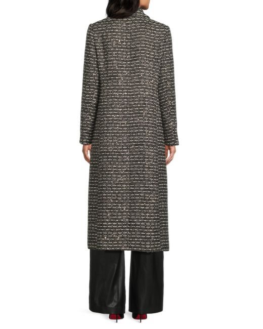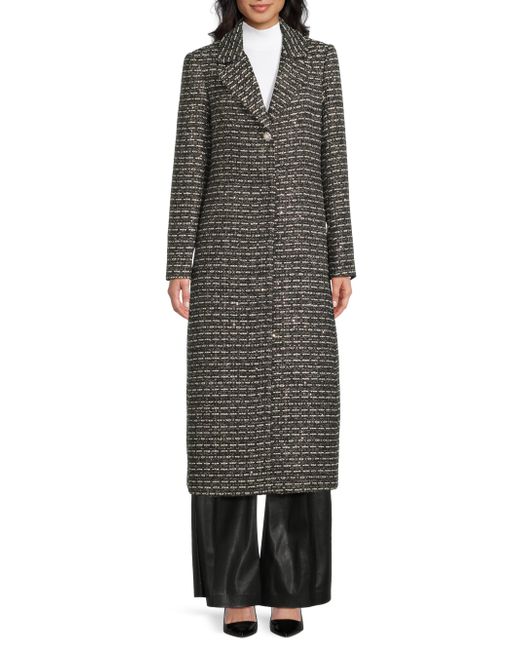 Crafted with metallized fibers, the SB tweed coat from Milly features notch lapels, center-front button and snap closures, and seam pockets. This longline design is detailed with jewel buttons for a refined touch. Notch collar Long sleeves Side-seam pockets Button and snap-front closure 90% polyester/4% metallized fibers/2% viscose/2% cotton/1% acrylic/1% polyamide Dry clean Imported SIZE & FIT About 49" from shoulder to hem Model measurements: 5'10" tall Model is wearing a US size Small. Outerwear And Swimwear - Wool > Milly > Saks Fifth Avenue. Milly. Color: Black White Tweed. Size: XS.