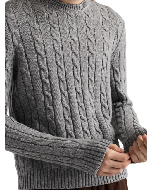 Cable-knit Regular fit Ribbed knit crew neck Semi-raglan shoulder Ribbed knit cuffs and hem Triangle logo Imported 100% Cashmere. Lsd Rtw - Prada Rtw > Prada > Saks Fifth Avenue. Prada. Color: Grey. Size: 40.