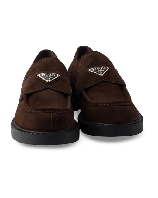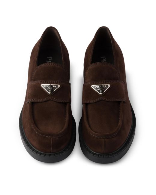 Leather band Enameled metal triangle logo Internal elastic insert Lightweight rubber sole with notched welt Heel height: 35 mm / 1.3'' Leather insole Imported 100% Calf leather. Lsd Rtw - Prada Rtw > Prada > Saks Fifth Avenue. Prada. Color: Brown. Size: 9.5.