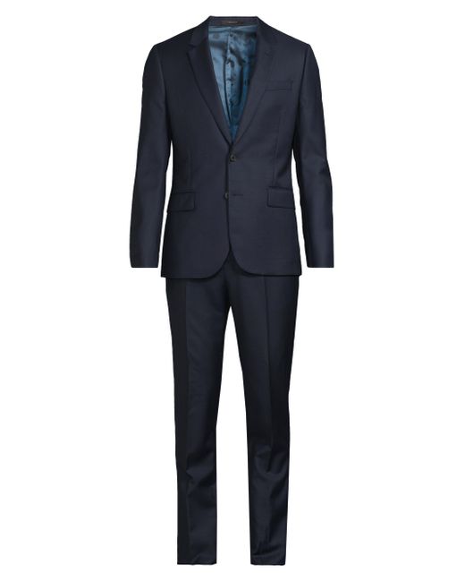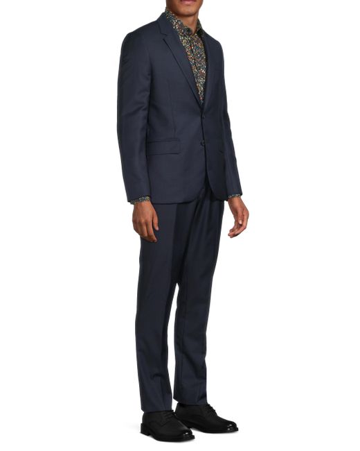 Designed to be easy fitting through the chest with a tailored waist and hip, the Paul Smith's single-breasted suit features a two-button blazer with a notched lapel and flap pockets. This wool set is complete with matching tailored suit trousers.100% wool. Lining: 100% viscose. Dry clean. Made in Portugal. JACKET Notched lapels Long sleeves, nonkissing button cuffs Welted flap side pockets Ventless Two-button closure Lined PANTS Pleated front Zip fly SIZE & FIT Model measurements: 6'2" tall, 40" chest, 32" waist Model is wearing a US size 40R. Mens Modern Coll & Outer - Modern Collections > Paul Smith > Saks Fifth Avenue. Paul Smith. Color: Very Dark Navy. Size: 38.