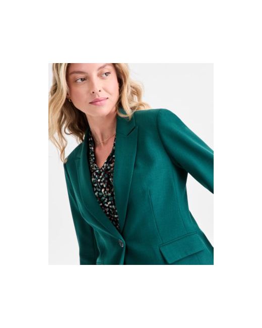 Designed in both missy and petite silhouettes, Kasper's timeless one-button blazer instantly polishes any office look, making the notched collar piece a total wardrobe essential.