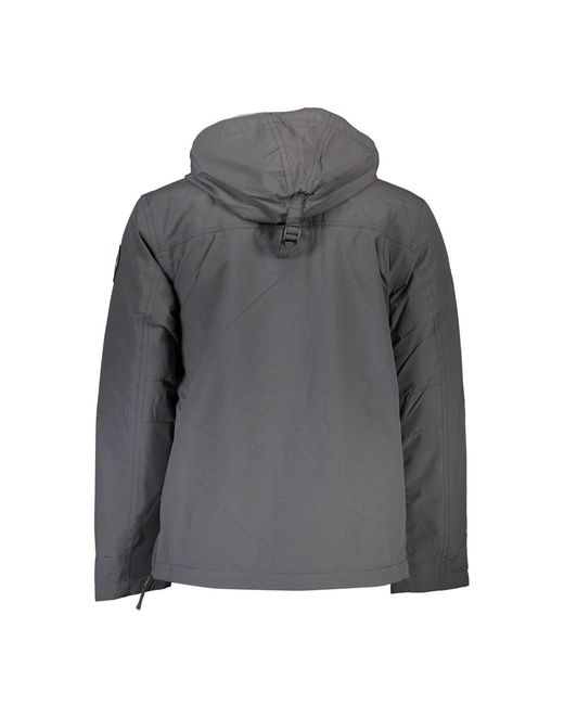 long-sleeved rainforest jacket, hood, 1 central pocket with zip and felt closure, side zip, application, logo, 30% recycled materials