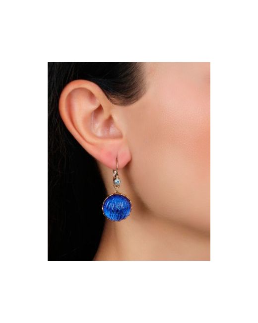 These round petites drop earrings showcase stunning oceanic sapphire blue fluted dome-shaped stones, radiating an elegant and captivating charm. The ornate design complements the deep blue hue, evoking the tranquil beauty of the sea. Delicately set to catch the light, these earrings offer a graceful touch to any look.