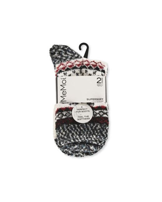 2 Pair Pack Fairisle Border Cloud Soft Crew Socks da Women di colore Nero
