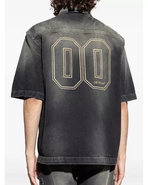 nero chiusura frontale con zip maniche corte tasche con patta sul petto colletto a punta dettaglio logo