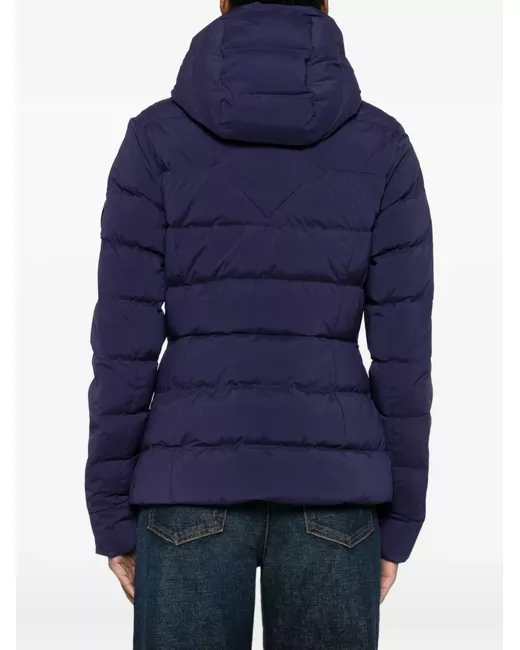 blue quilted logo patch two-way zip fastening classic hood