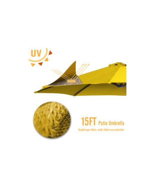 Enjoy optimal shade with the 15x9ft double-sided patio umbrella. The umbrella offers maximum coverage for your outdoor space, perfect for creating a comfortable, shaded area.