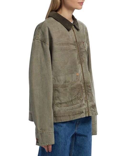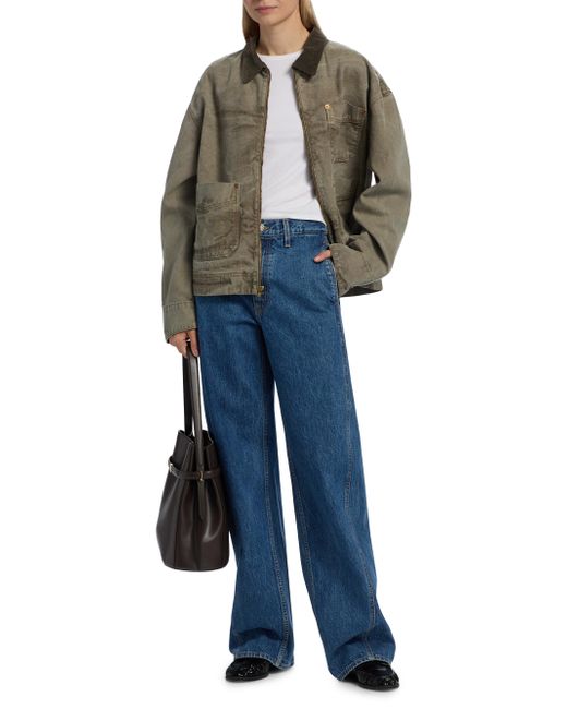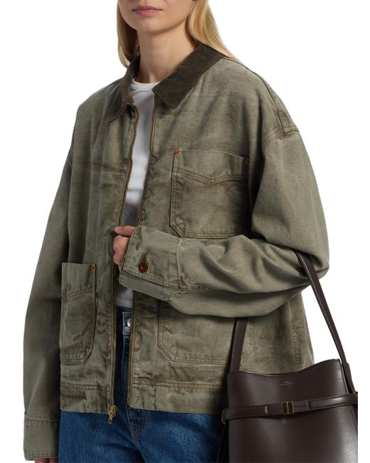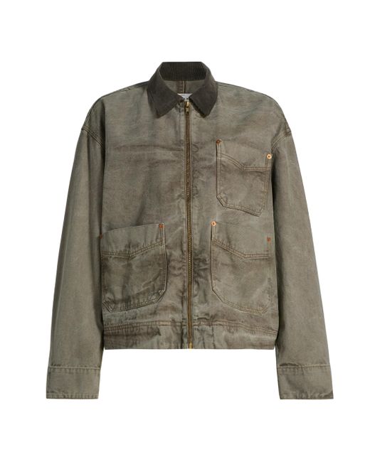 Thompson Canvas-trimmed Distressed Denim Jacket Light denim