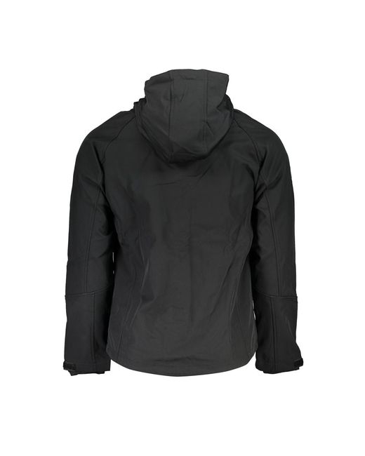 Long Sleeve Jacket, Soft Shell, Removable Hood, 2 External Pockets, 1 Small Pocket, 2 Internal Pockets, Zip, Contrast Details, Application, Logo