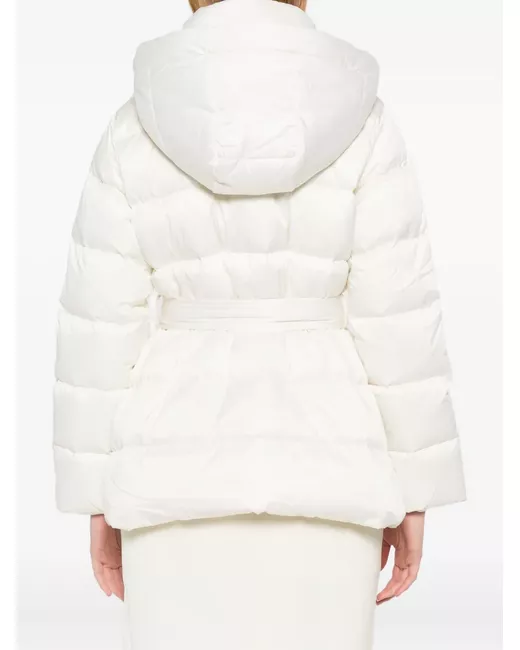 white adjustable waist belt classic hood front flap pockets front press-stud fastening quilted design