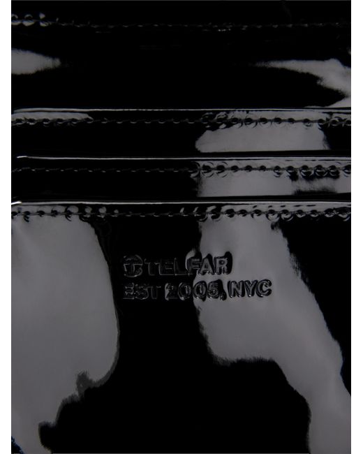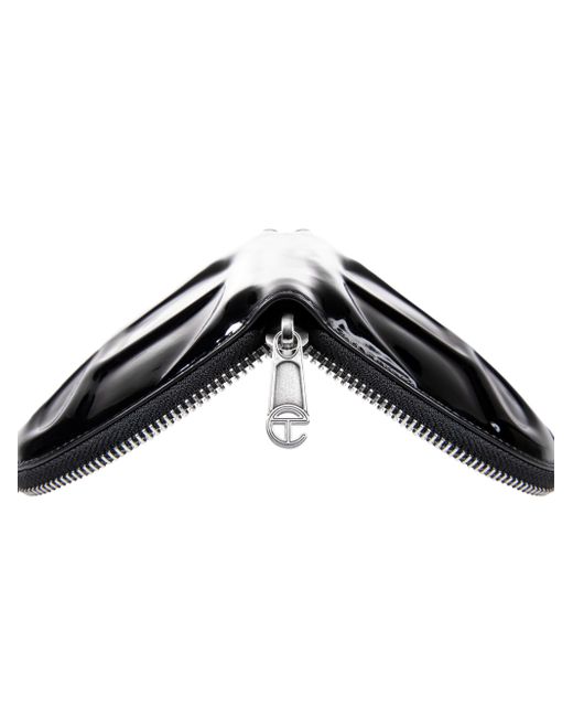 The TELFAR wallet features a metallic design with interior card slots and a slip pocket. Interior: one slip pocket and six card slots Zip-around closure Microfiber/polyurethane/polyester Imported SIZE About 9.25"W x 4.25"W x 4"D. Men Accessories - Contemporary Accessories > Telfar > Saks Fifth Avenue. TELFAR. Color: Black Patent.