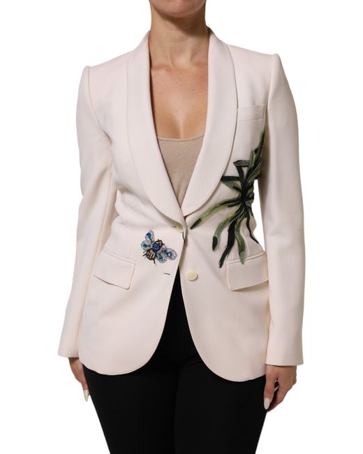DOLCE & GABBANA Gorgeous brand new with tags, 100% Authentic Dolce & Gabbana coat is crafted in soft beige and adorned with intricate embroidery for a luxurious finish. Featuring a single-breasted front and a tailored silhouette, it exemplifies Italian craftsmanship — perfect for formal occasions, evening events, or sophisticated daytime layering.Model: Single Breasted CoatColor: BeigeMaterial: 100%WVInt.: 06%EA+94%SEFitting: RegularButton closureLogo detailsMade in ItalyVery exclusive and high craftsmanship