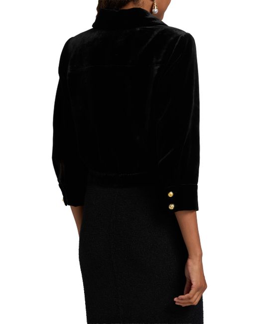 Crafted of plush velvet with a touch of silk, the Jia jacket from L'AGENCE is cut for a tailored, cropped silhouette and styled with a point collar and patch pockets. Decorative goldtone buttons complete the front placket. Point collar Three-quarter-length sleeves Patch pockets Button-front closure 82% viscose/18% silk Lining: 100% polyester Dry clean Imported SIZE & FIT About 19.5" from shoulder to hem Model measurements: 5'10" tall Model is wearing a US size 4 ABOUT THE BRAND Founded in 2008, L'Agence marries Southern California ease with chic Parisian style. Using luxurious fabrics, the Los Angeles-based label delivers feminine collections that are both timeless and versatile. In 2015, the label launched a denim line in a range of sleek, impeccably tailored cuts. Contemporary Sportswear - Workshop > L'agence > Saks Fifth Avenue. L'AGENCE. Color: Black. Size: 6.