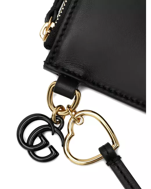 black zip fastening rear card slots charm detail gold-tone hardware wrist strap