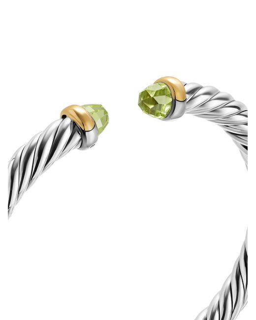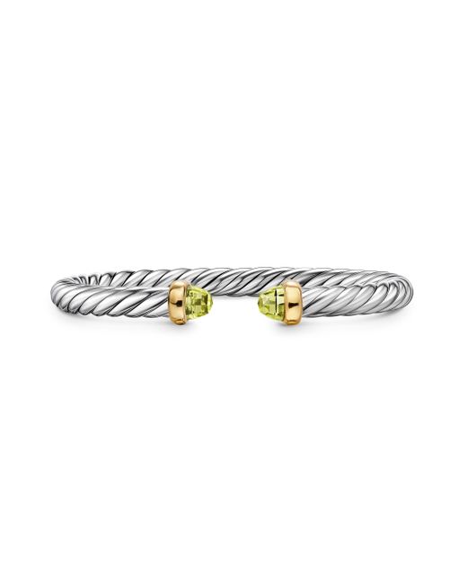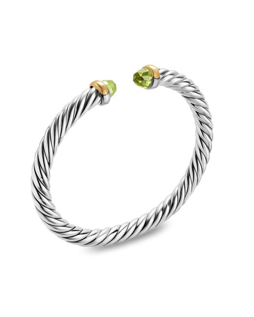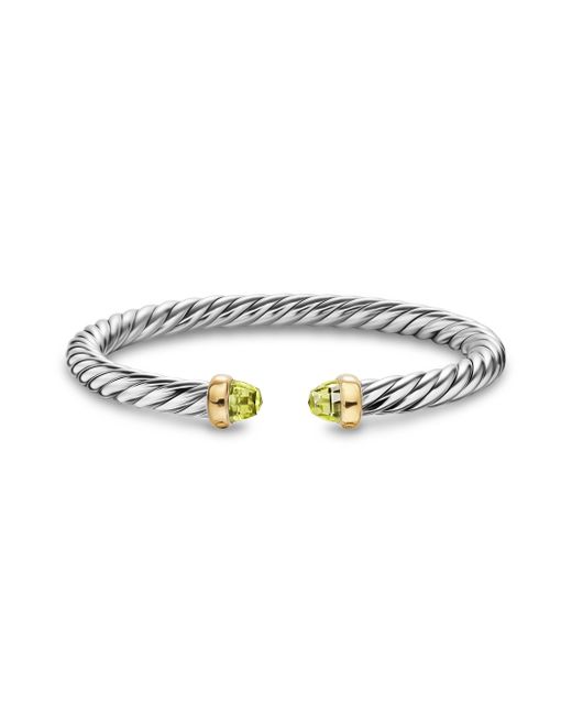 David Yurman's artistic signature, Cable began as a bracelet that he hand-twisted from 50 feet of wire. For the past 30 years, he has evolved the twisted helix into a myriad of designs. Sterling silver with 14-karat yellow gold Bracelet, 6mm Nitinol core to provide flex movement Size Small (S) fits wrists up to 5.84'' Made in USA ABOUT THE BRAND David, a sculptor, and his wife, Sybil, a painter, launched their innovative jewelry brand in 1980 in New York City. Since then, the American design house has pioneered cutting-edge collections-from its iconic combination of sterling silver and diamonds to signature pinky rings. Today, with their son Evan, the Yurmans continue to deliver timeless pieces inspired by nature, art, ancient symbols and Manhattan's stunning architecture. Lsd Jewelry - David Yurman > David Yurman > Saks Fifth Avenue. David Yurman. Color: Peridot. Size: Small.