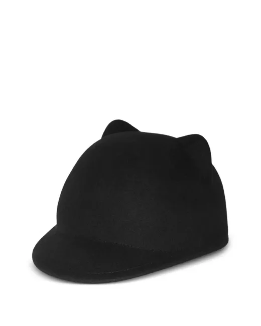 black wool felted finish pop-up ears curved peak narrow curved brim
