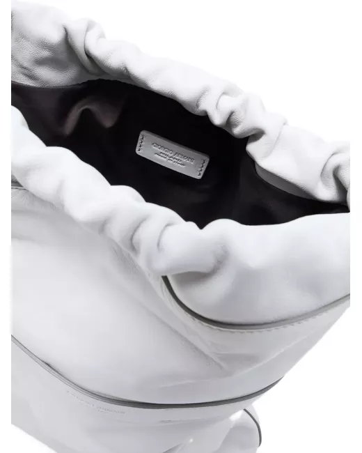 white drawstring fastening two shoulder straps rectangular shape debossed logo main compartment leather