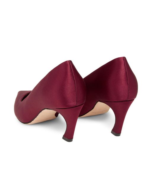 These pumps from 22 élevé are crafted of satin and set on a 65mm curved heel. Point toe Slips on Satin upper Leather lining Padded insole Leather sole SIZE Curved heel: about 2.5" (65mm). Women's Shoes - Designer Classics > 22élevé > Saks Fifth Avenue. 22élevé. Color: Bordeaux. Size: 6.