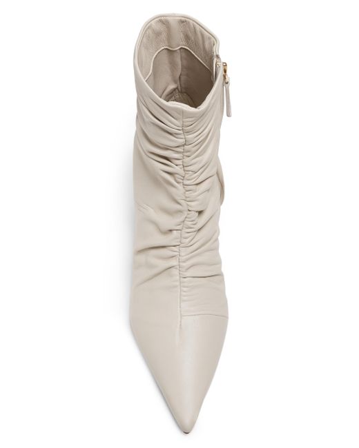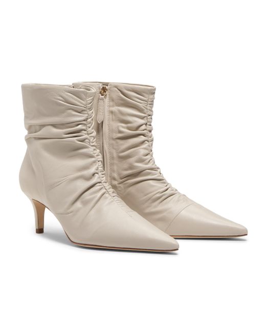 These ruched booties from 22élevé are crafted of supple leather and designed with a pointed toe and 55mm heel. Point toe Side zip closure Leather upper Textile lining Padded insole Leather sole Imported SIZE Heel: about 2.25" (55mm) Shaft: about 5.75" Leg opening: about 11.75". Women's Shoes - Designer Classics > 22élevé > Saks Fifth Avenue. 22élevé. Color: Pearl. Size: 7.