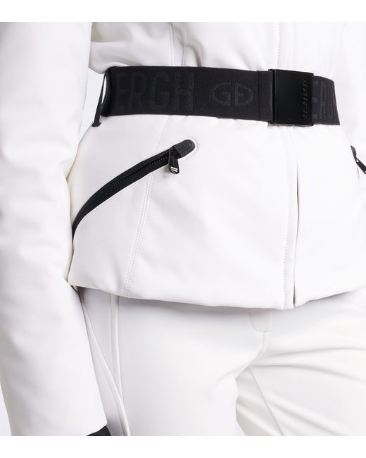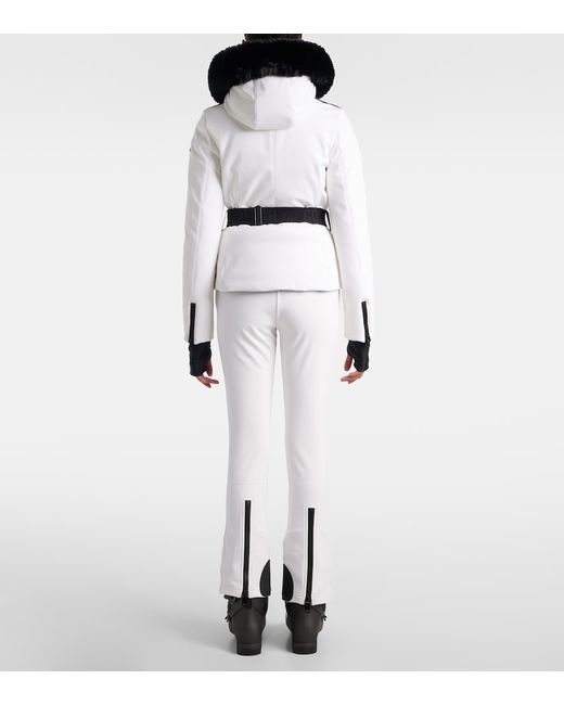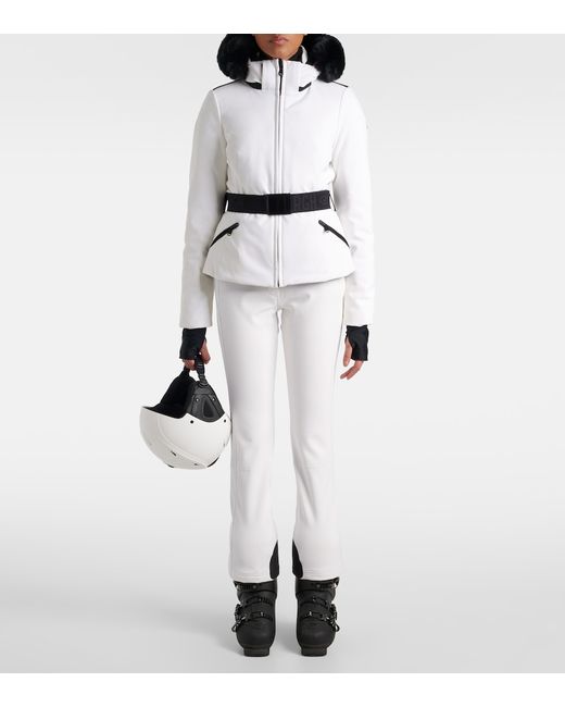 Materiale: 74% poliammide, 26% elastan. Trattamento: lavaggio professionale. Made in Hong Kong. Colore del designer: White. Slim. Chiusura: con zip frontale. Fodera: 100% poliammide. Fodera II: 74% poliammide, 26% elastan. Imbottitura: 90% piumino, 10% piuma. Cappuccio rimovibile. Decorazione rimovibile. Cintura rimovibile. Polsini: con zip. Tasche: tasche con zip, tasche interne, tasca per lo skipass.