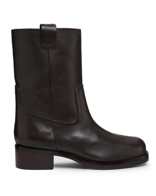 These pull-on motorcycle boots from 22élevé are crafted of leather and designed with a rounded square toe. Square toe Pulls on Leather upper Textile lining Padded insole Leather sole Imported SIZE Block heel: about 1.5" (40mm) Shaft: about 8.75" Leg opening: about 12.5". Women's Shoes - Designer Classics > 22élevé > Saks Fifth Avenue. 22élevé. Color: Dark Brown. Size: 7.