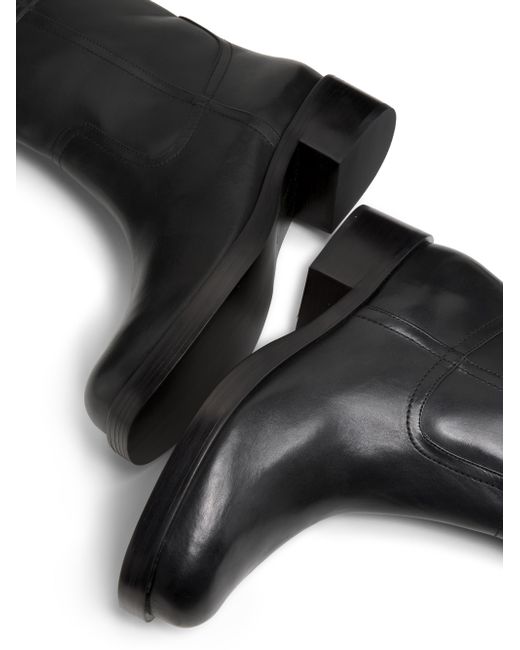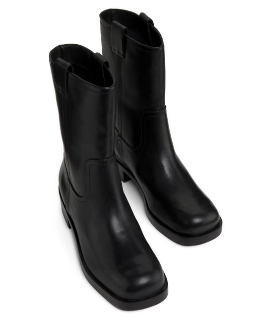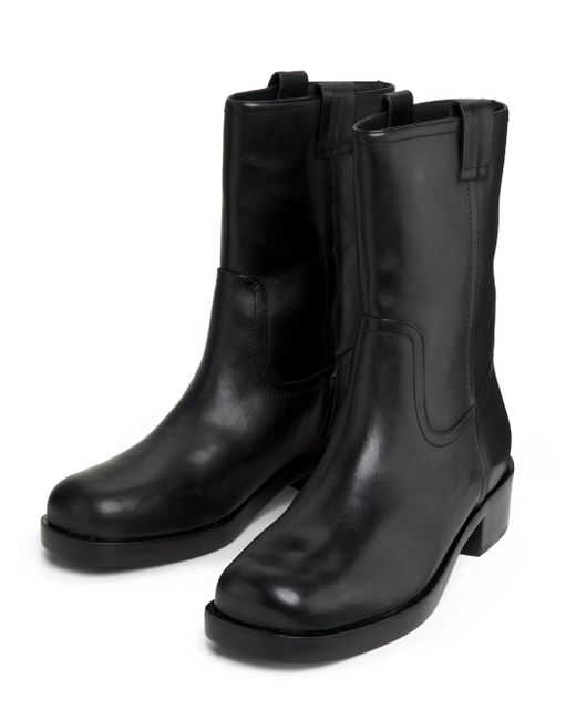 These pull-on motorcycle boots from 22élevé are crafted of leather and designed with a rounded square toe. Square toe Pulls on Leather upper Textile lining Padded insole Leather sole Imported SIZE Block heel: about 1.5" (40mm) Shaft: about 8.75" Leg opening: about 12.5". Women's Shoes - Designer Classics > 22élevé > Saks Fifth Avenue. 22élevé. Color: Black. Size: 5.5.