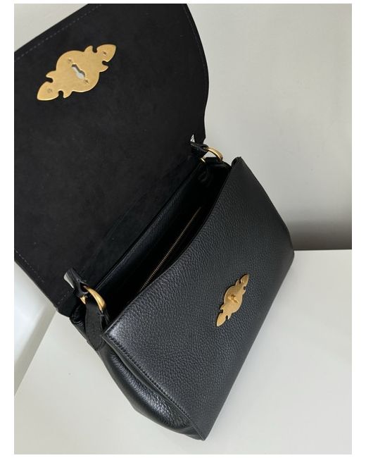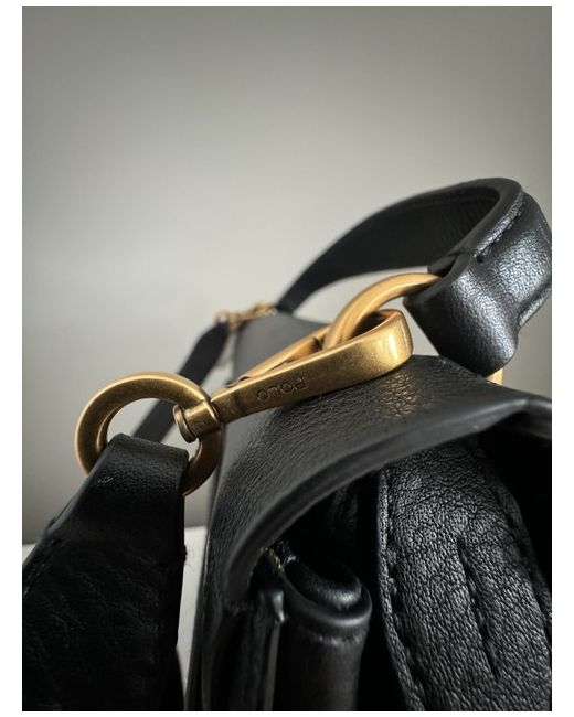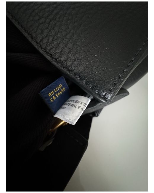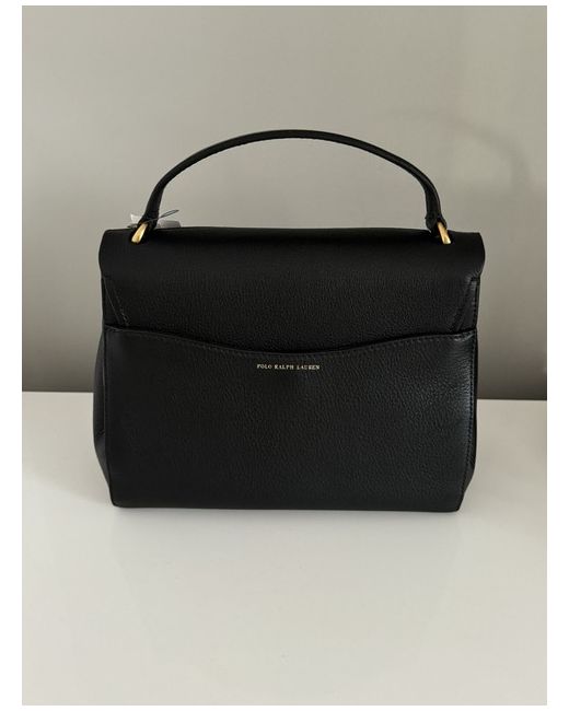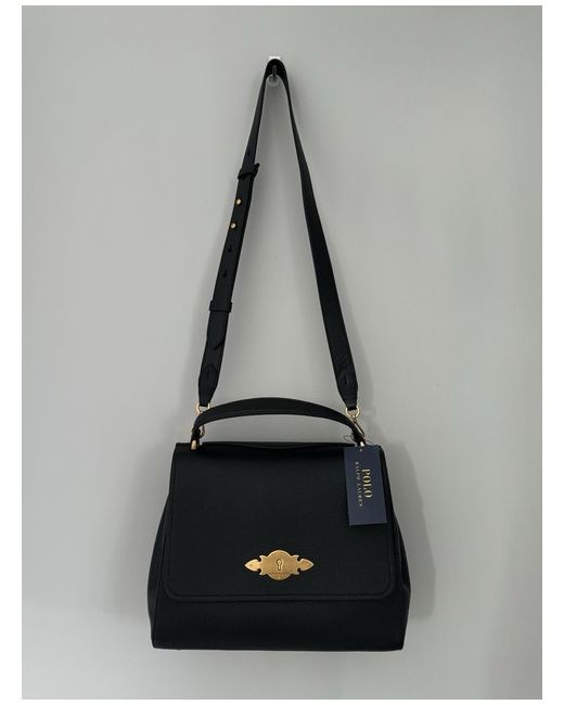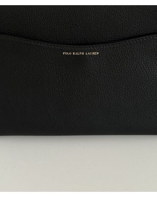 A leather saddle crossbody bag from POLO RALPH LAUREN featuring the signature logo on the front, an interior zip pocket, and a magnetic fastening. It is spacious yet lightweight, fitting an iPad as shown in one of the photos.