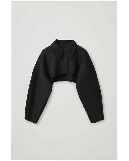 double faced wool collared zip up cropped coat jacket XS-S di colore Nero