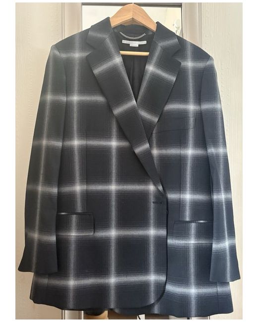 The Stella McCartney Blazer in black is a stylish and versatile addition to any woman's wardrobe. Made from luxurious wool with a modern check pattern, this blazer features a regular fit and a double-breasted cut. Perfect for both casual and formal occasions, it can be worn in autumn and spring. Designed for size 40, this blazer is a must-have for those seeking a chic and well-crafted garment that can be dry cleaned for easy maintenance.