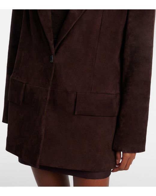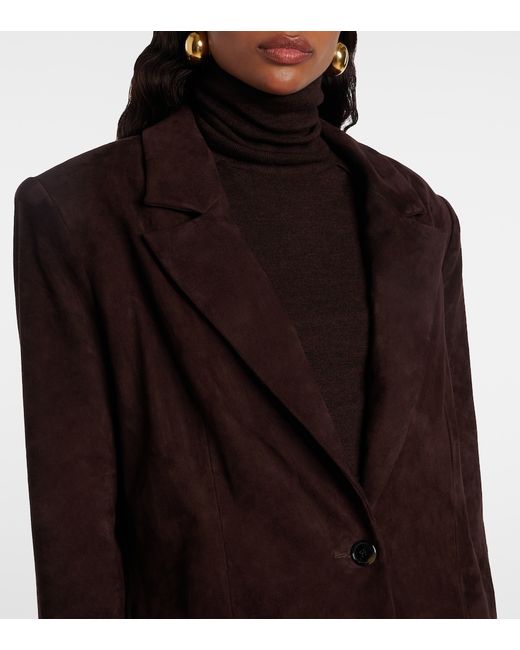 Materiale: 100% pelle di agnello (suede). Trattamento: lavaggio professionale. Made in Portugal. Colore del designer: Castor. Colore dell'articolo: marrone. Materiale II: 97% cotone, 2.4% lyocell, 0.6% elastan. Fodera: 54% viscosa, 43% nylon, 3% elastan. Fodera II: 60% lana, 38% poliestere, 2% elastan. Revers dentellato. Chiusura: chiusura monopetto (con un bottone). Tasche: tasche con risvolto. Spalline imbottite. Spacco: senza spacco. Include: borsa porta abiti. Pelle.