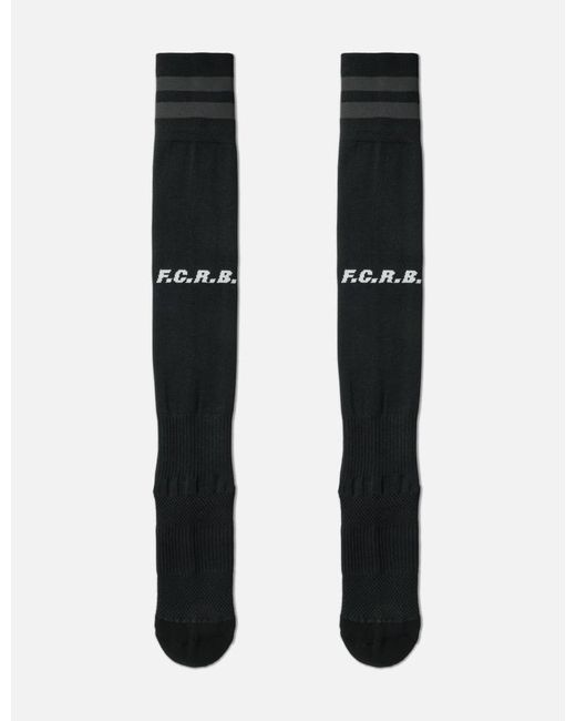F.C.Real BristolGame SocksKnee-high lengthStriped details on cuffsWoven logo on frontVertical ribbed panel at backRibbings at foot and ankleColor: Black