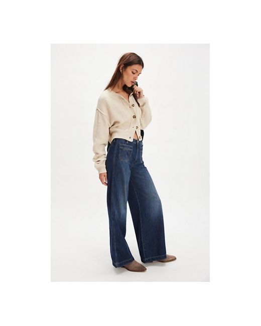 The perfect combination of cool and classic, these wear-anywhere jeans are featured in a high-rise, trouser-inspired style with defined patch pockets at front and sunburst stitching at back for a special finishing touch. **Fit:** High-rise style, wide-leg silhouette, loose fit **Features:** Button closure with zip fly, four-pocket design, belt loop detailing, contrast stitching throughout **Why We ❤ It:** Just as versatile as they are vintage-inspired, these super cute jeans are sure to be a classic in your denim rotation for countless years to come. Wrangler Trouser Jeans at Free People in Homestead Haze, Size: 25