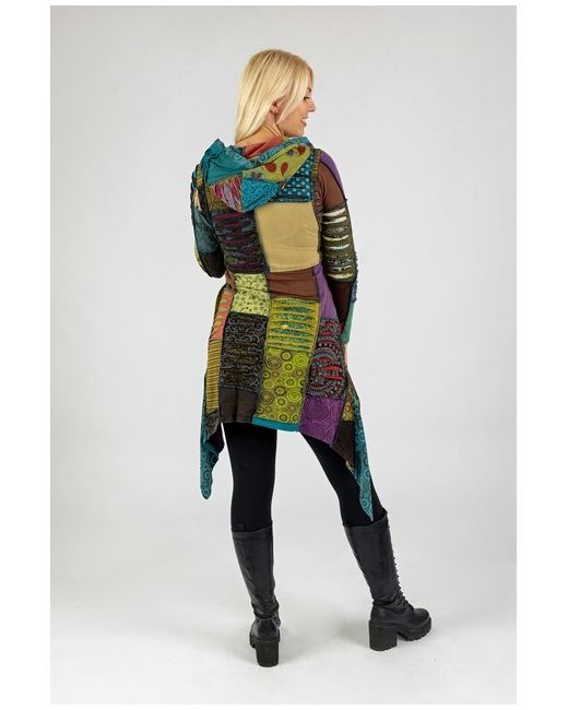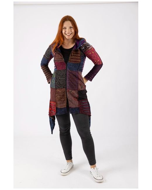Add colour and character to your wardrobe with theAnandi Pixie Hem Jacket, a vibrantcotton patchwork coat that’s as unique as you are. Crafted from bold printed fabrics, this longline boho jacket featuresdetailed razor-cut accents, arounded hood ,full zip closure, andtwo handy pockets.