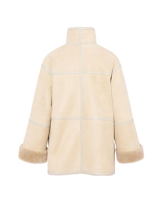 Crafted in France, Yves Salomon's shearling-lined coat elevates the oversized silhouette with a grid-like seam design and slit pockets. Convertible collar Long sleeves Side slit pockets Front zip closure 100% shearling Fur type: Dyed lamb Fur origin: Spain Specialized fur clean Made in France SIZE & FIT About 31" from shoulder to hem Model measurements: 5'10" tall Model is wearing a US size 4. Advanced Designer - Designer Emerging Brands > Yves Salomon > Saks Fifth Avenue. Yves Salomon. Color: Rivage. Size: 2.