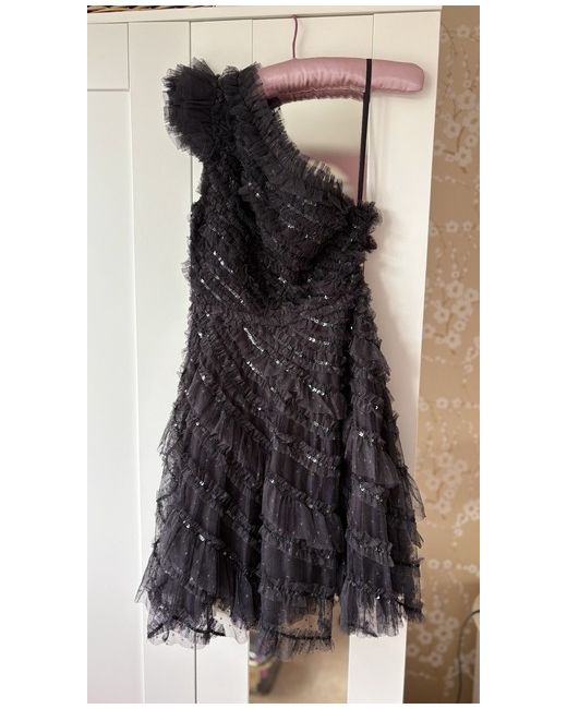 This dress is perfect for Christmas parties. Immaculate and brand new with tags. Never worn. Beautiful off the shoulder detail in black tuille with sequins. Very flattering.