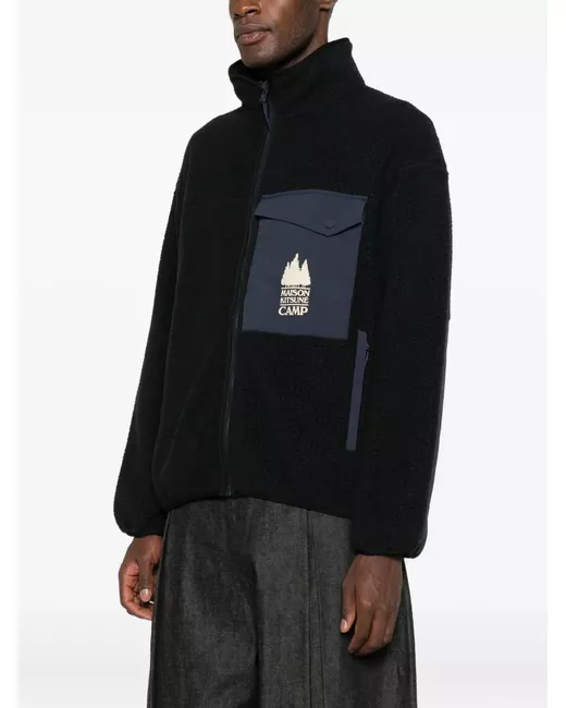 black chest pocket zip fastening long sleeves straight hem tonal stitching