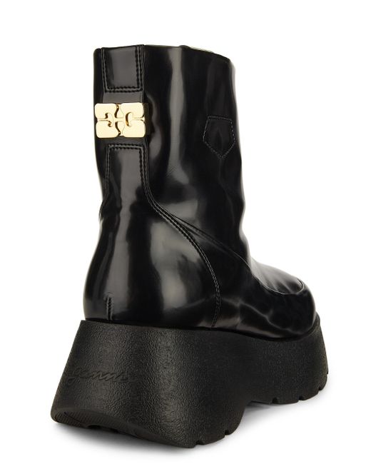 These Ganni Kat ankle boots are set on a platform sole. The upper features stitched paneling while the back is accented with a metallic logo-engraved buckle detail. Round toe Slips on Textile upper Textile lining EVA sole Made in Portugal SIZE Shaft height: about 14.5". Women's Shoes - Workshop Shoes > Ganni > Saks Fifth Avenue. Ganni. Color: Black. Size: 5.