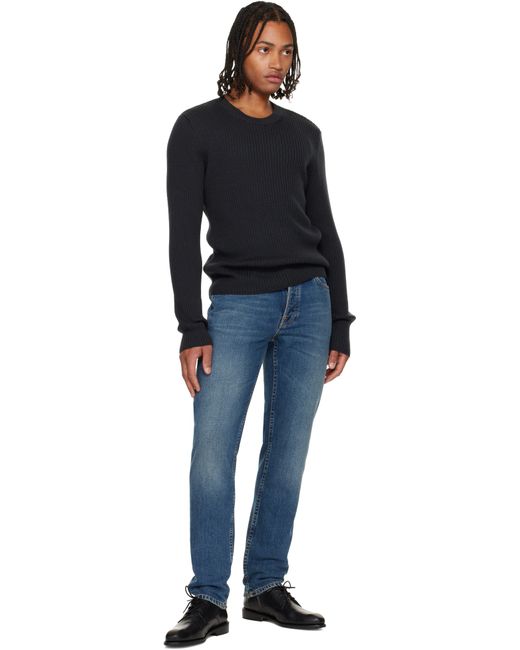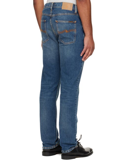 13 oz stretch organic cotton denim jeans. · Fading and whiskering throughout · Slim-fit · Mid-rise · Belt loops · Five-pocket styling · Zip fly · Logo patch at back waistband and pocket · Contrast stitching in tan Supplier color: Wild blue