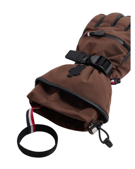 Made for the slopes, these down-filled gloves are essential in a winter wardrobe. Made from 2L 4-way stretch nylon Lining in nylon Details in leather Padded Pocket with zipper closure Buckle on the cuff Logo in silicone Part a: base fabric: 87% polyamide / nylon, 13% elastane / spandex; lining: 100% polyamide / nylon; padding: 100% polyester;leather exterior: lamb; part b: base fabric: 87% polyamide / nylon, 13% elastane / spandex; lining: 100% polyamide / nylon Part a: do not wash; do not bleach; do not tumble dry; do not iron; do not dry clean; do not professionally wet clean; flat dry in the shade; wash separately; wash in professional laundry for leather; part b: wash max 30c - very mild process; do not bleach; do not tumble dry; do not iron; do not dry clean; professional wet cleaning - very mild process; flat dry in the shade; wash separately; wash inside out; do not twist or wring; protect trims while washing Imported. Lsd Mens - Moncler > Moncler Grenoble > Saks Fifth Avenue. Moncler Grenoble. Color: Brown. Size: Small.