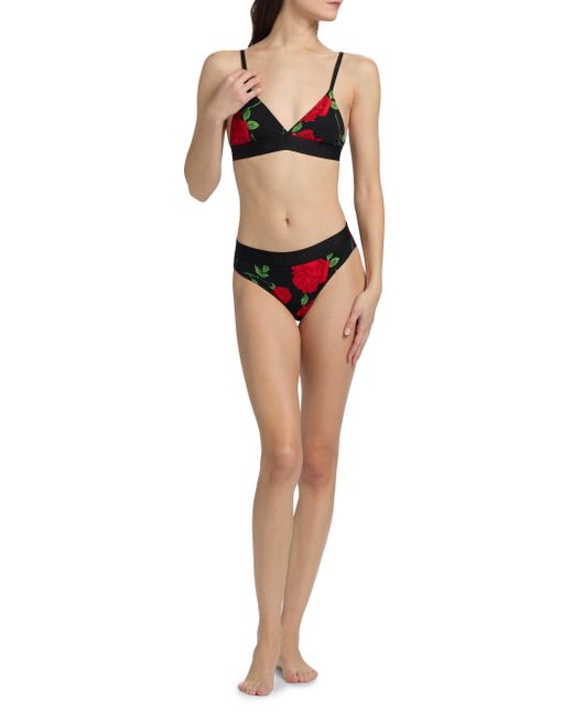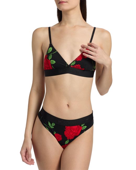 From the Moschino Intimo Donna Collection. Crafted of soft stretch cotton, this triangle bra from Moschino is defined by a dynamic rose print. A tonal elasticized logo band completes the design. V-neck Adjustagle straps Back hook-and-eye closure 95% cotton/5% elastane Machine wash Imported. Lingerie - Designer Foundations > Moschino > Saks Fifth Avenue. Moschino. Color: Multi Black. Size: XS.