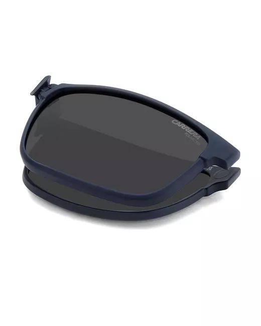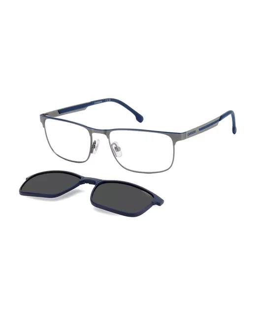 dark blue metal frame rectangle frame clip-on sunglasses logo detail nose pads These glasses come with a protective case.
