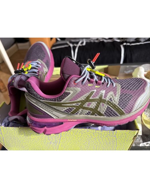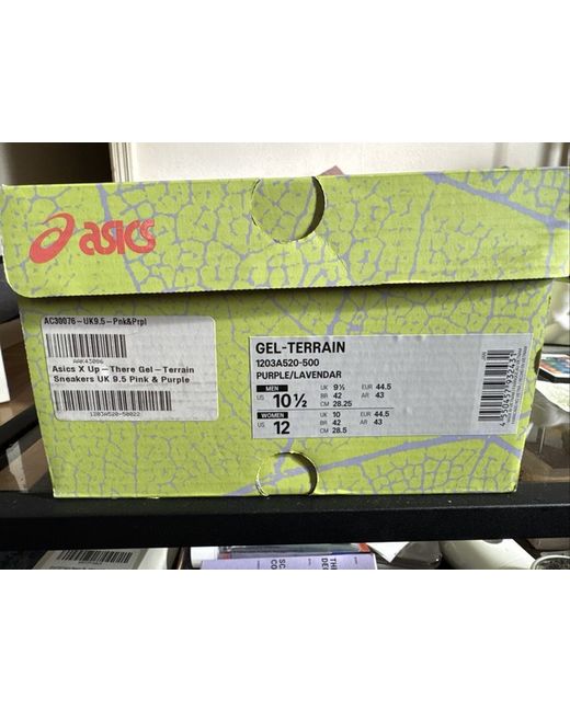 The ASICS Up There x Gel Terrain Purple Lavender trainers are a stylish and comfortable option for casual wear. With a rubber outsole for grip and a gel insole for added cushioning, these sneakers are perfect for summer activities. The standard shoe width and standard fit make them suitable for everyday wear, while the unique purple colour adds a pop of style to your outfit. These ASICS trainers are a great choice for men who appreciate quality and design in their footwear.