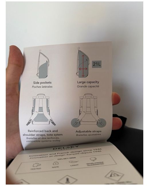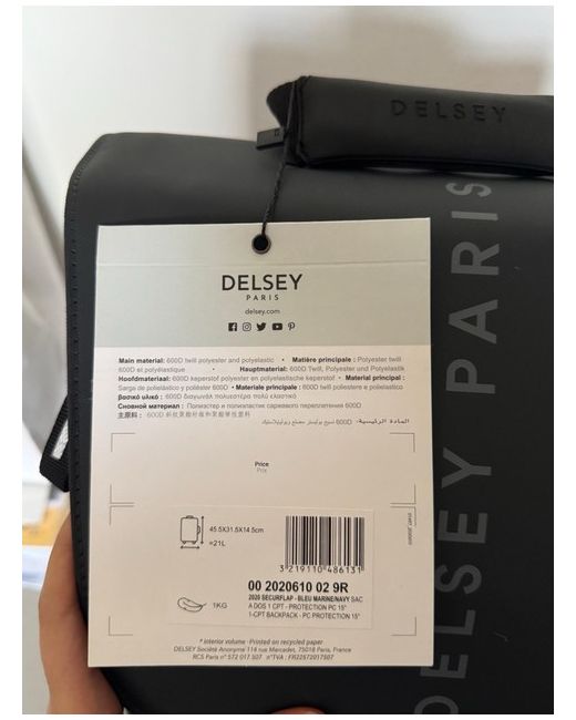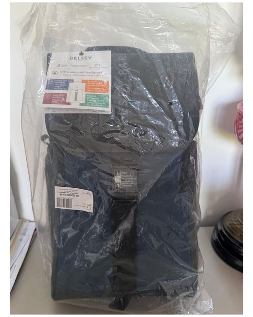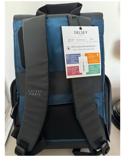 New with tags. The Delsey Backpack is a stylish and practical choice for travel, suitable for both men and women. Made from durable polyester material in a sleek blue colour, this backpack features a zippered closure for easy access and security. With a spacious interior, this backpack is perfect for carrying all your essentials while on the go, making it a convenient option for any traveller.