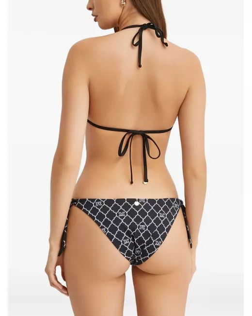 black monogram print triangle cups removable padding ties at the neck and back Be mindful to try on swimwear over your own garments.