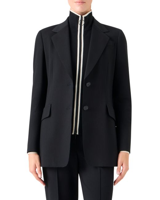 Crafted of stretch jersey, this Akris punto blazer is styled in a single-breasted two-button design. Classic notched lapels complete the look. Notch lapels Long sleeves Side flap pockets Button-front closure 69% viscose/25% nylon/6% elastane Lining: 100% cupro Dry clean Imported SIZE & FIT Model measurements: 5'10" tall Model is wearing a US size Small ABOUT THE BRAND Founded in 1922 in St. Gallen, Switzerland, the name Akris was derived from founder Alice-Kriemler Schoch's initials. Akris punto was later launched in 1995 with a relaxed, understated mindset. With a range of contemporary looks including architectural silhouettes, graphic prints and colorblocking, each piece is finished with an athletic edge. Designer Lifestyle - Akris Punto > Akris Punto > Saks Fifth Avenue. Akris punto. Color: Black. Size: 6.