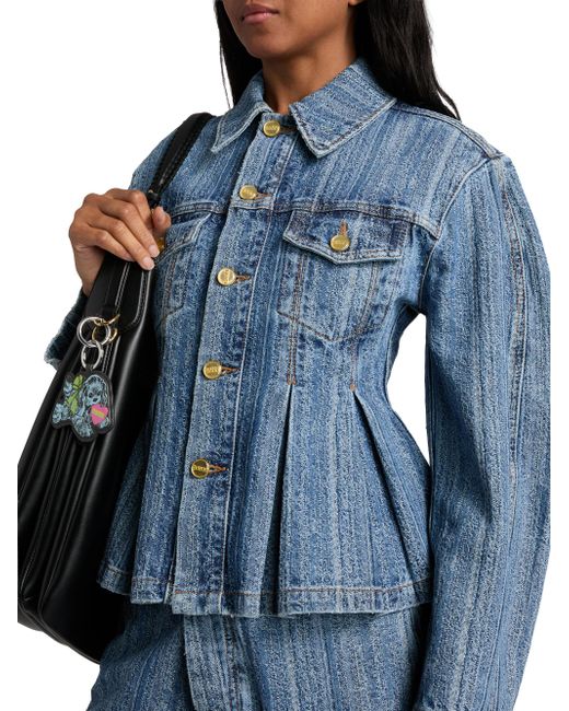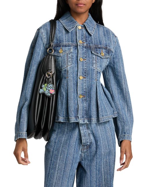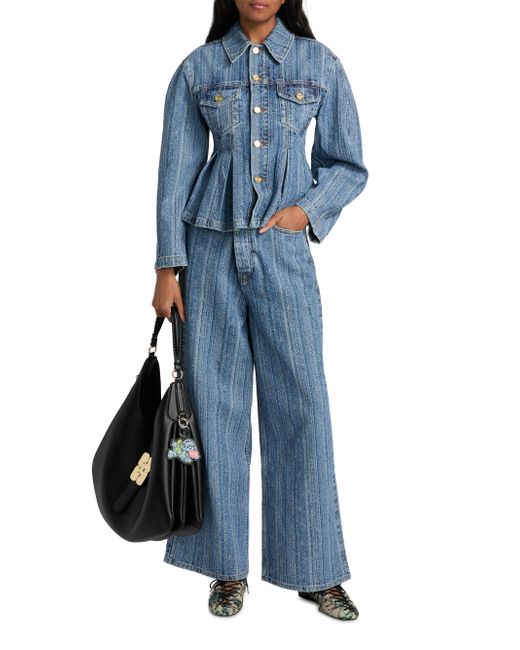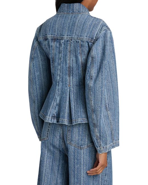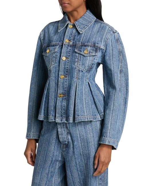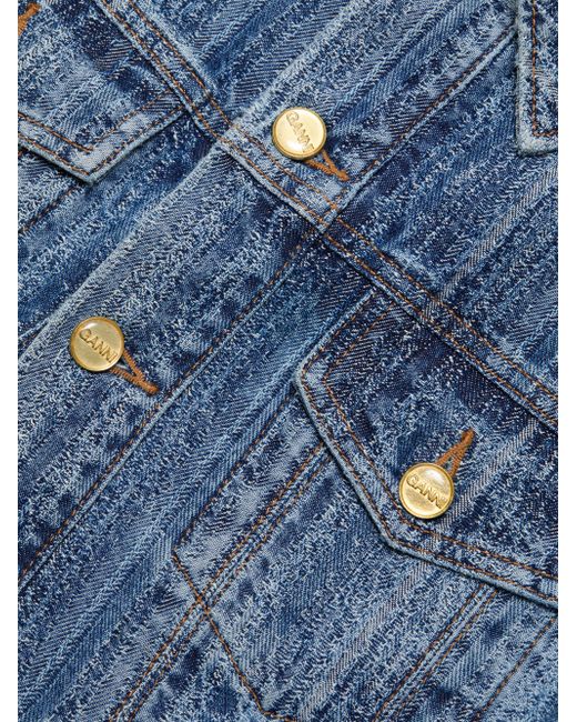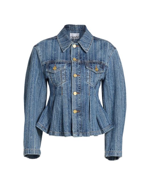 Crafted of organic cotton denim, Ganni's structured fitted jacket is tailored with a spread collar, long sleeves, and a peplum, flared hem. This style is designed with chest flap pockets, exposed seams, and button-front closure. Made with organic cotton Spread collar Long sleeves, band cuffs Chest button-through flap pockets Peplum hem Button-front closure 100% organic cotton, exclusive of trim Machine wash Imported SIZE & FIT About 24.5" from shoulder to hem Model measurements: 5'10" tall Model is wearing a US size 4. Contemporary Sportswear - Contemporary Collections > Ganni > Saks Fifth Avenue. Ganni. Color: Indigo. Size: 2.