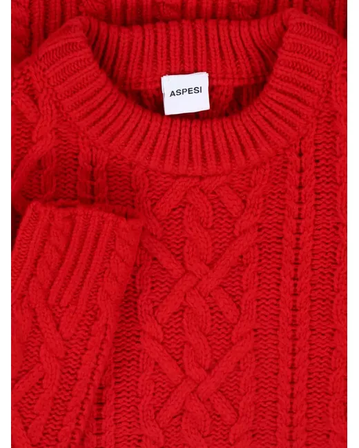 red cable knit ribbed hem ribbed cuffs crew neck long sleeves