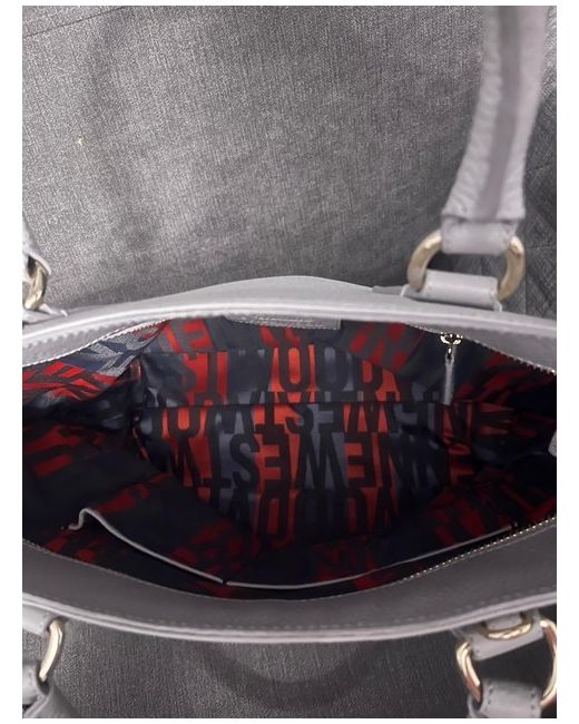 Silver grey Genuine leather Additional strap so can be worn Cross body or handbag With Gold hardware - on handles & Vivienne Westwood emblem Inside One single compartment which has red/ grey and back VW pattern with 2 open pockets and 1 small zipped compartment Comes with dust bag New without tags Height 23 cm Length 36 cm Width 5cm