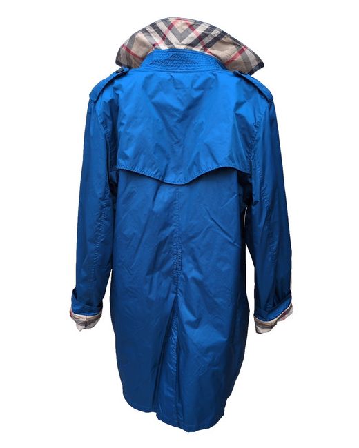 Burberry Lightweight Trench Coat. Burberry embossed buttons. Size - UK 18 IT 50. Colour - Blue. MISSING BELT . Length 35". 2 external pockets.