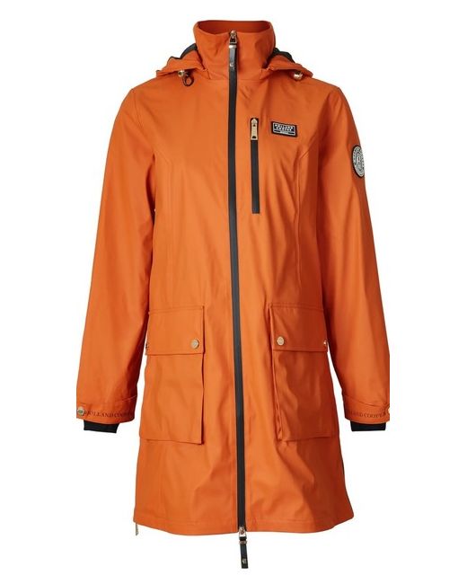 The Holland Cooper Brecon Raincoat is a stylish and practical choice for women looking for a waterproof coat to stay dry in the winter. Made from polyurethane with a vibrant burnt orange colour, this casual rain coat has a removable hood. The sleek design and no pattern make it a versatile option for everyday wear, perfect for any outdoor adventure. Can offer this with the original packaging or not RRP £279.00